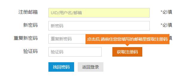 2. 填寫好用戶信息,請點擊'獲取驗證碼'。根據(jù)提示'進入注冊郵箱提取驗證碼'